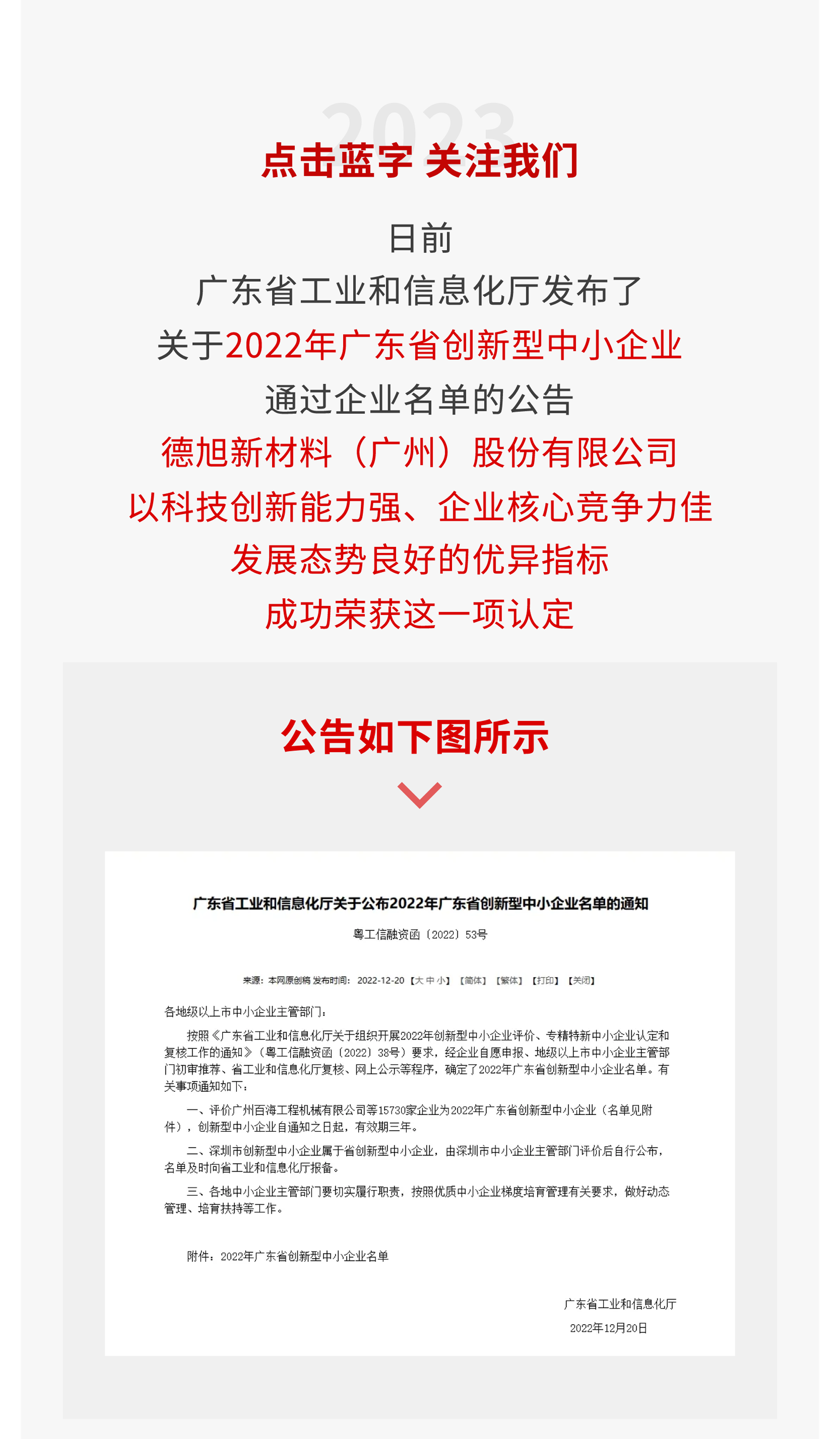 喜报丨热烈祝贺我司荣获“2022年广东省专精特新中小企业”称号!
